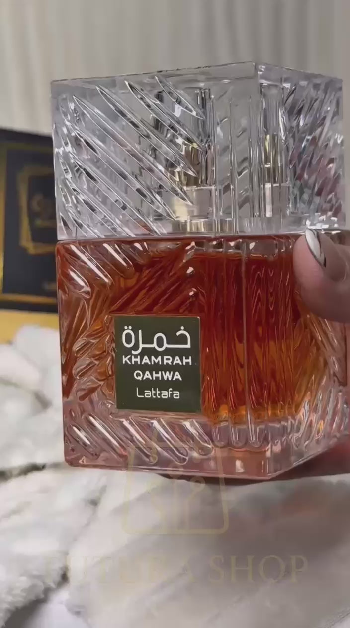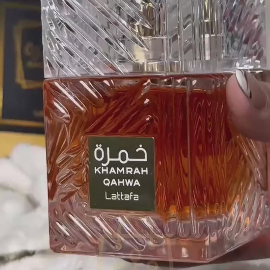 El acorde superior es la frescura cítrica de la bergamota enmarcada por la especia cálida y aterciopelada de la canela y la salvia refinada. El corazón del perfume resuena con el delicioso olor cremoso del praliné, que se funde en una neblina fragante de dulces notas afrutadas y matices florales de nardo. Mientras que la base de Khamrah ofrece una estela aromática suntuosa que combina la dulzura sensual de la vainilla con maderas preciosas especiadas, oud ahumado dulce, mirra aromática ahumada, haba, tonka especiada y benjuí resinoso de vainilla, brillando.